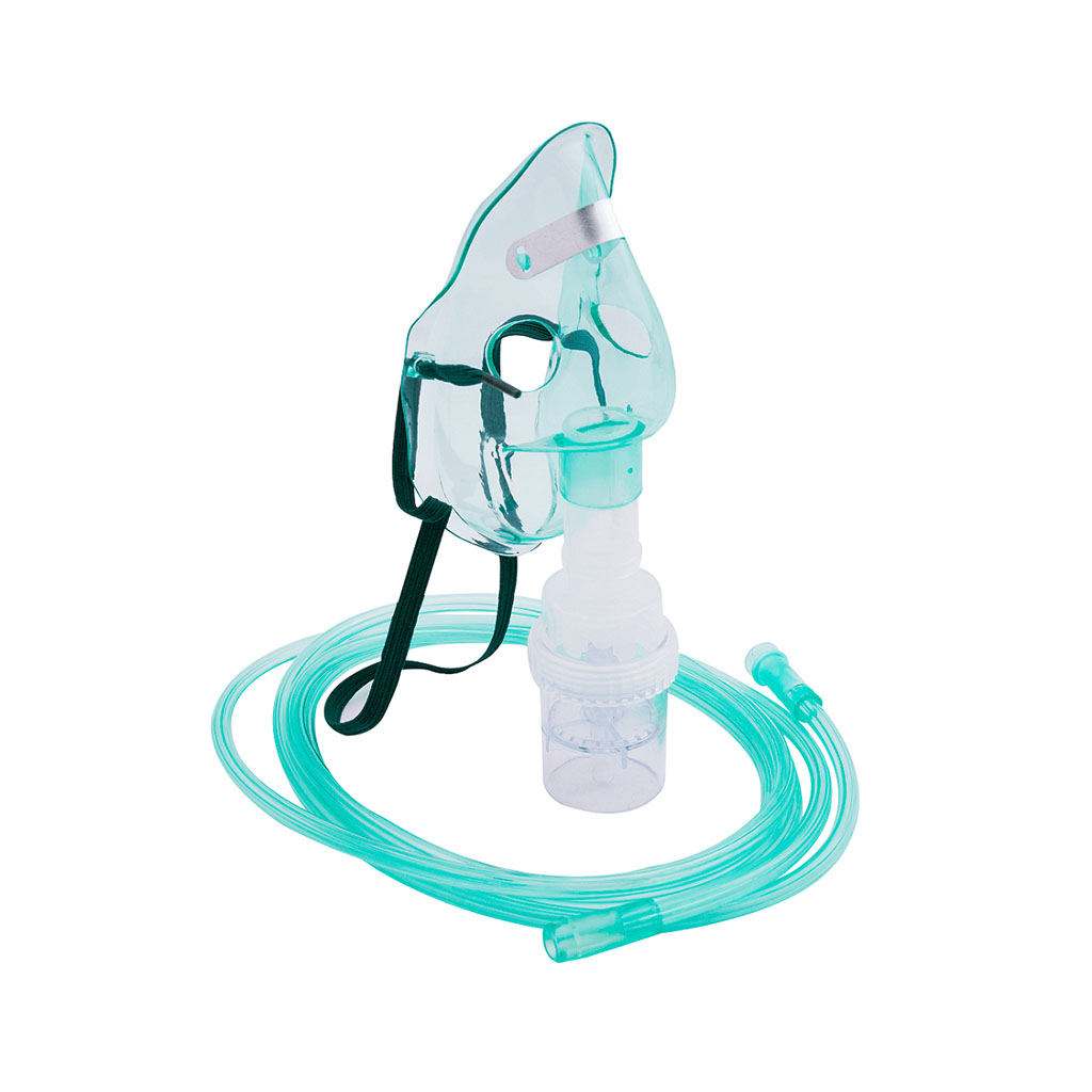 El kit de nebulización (para adultos y niños) es un dispositivo estéril diseñado para la administración cómoda de oxígeno, cubriendo las vías respiratorias nasales y orales. Se destaca por ser un producto de alta calidad, fabricado con materiales no tóxicos y diseñado anatómicamente para el confort del paciente.